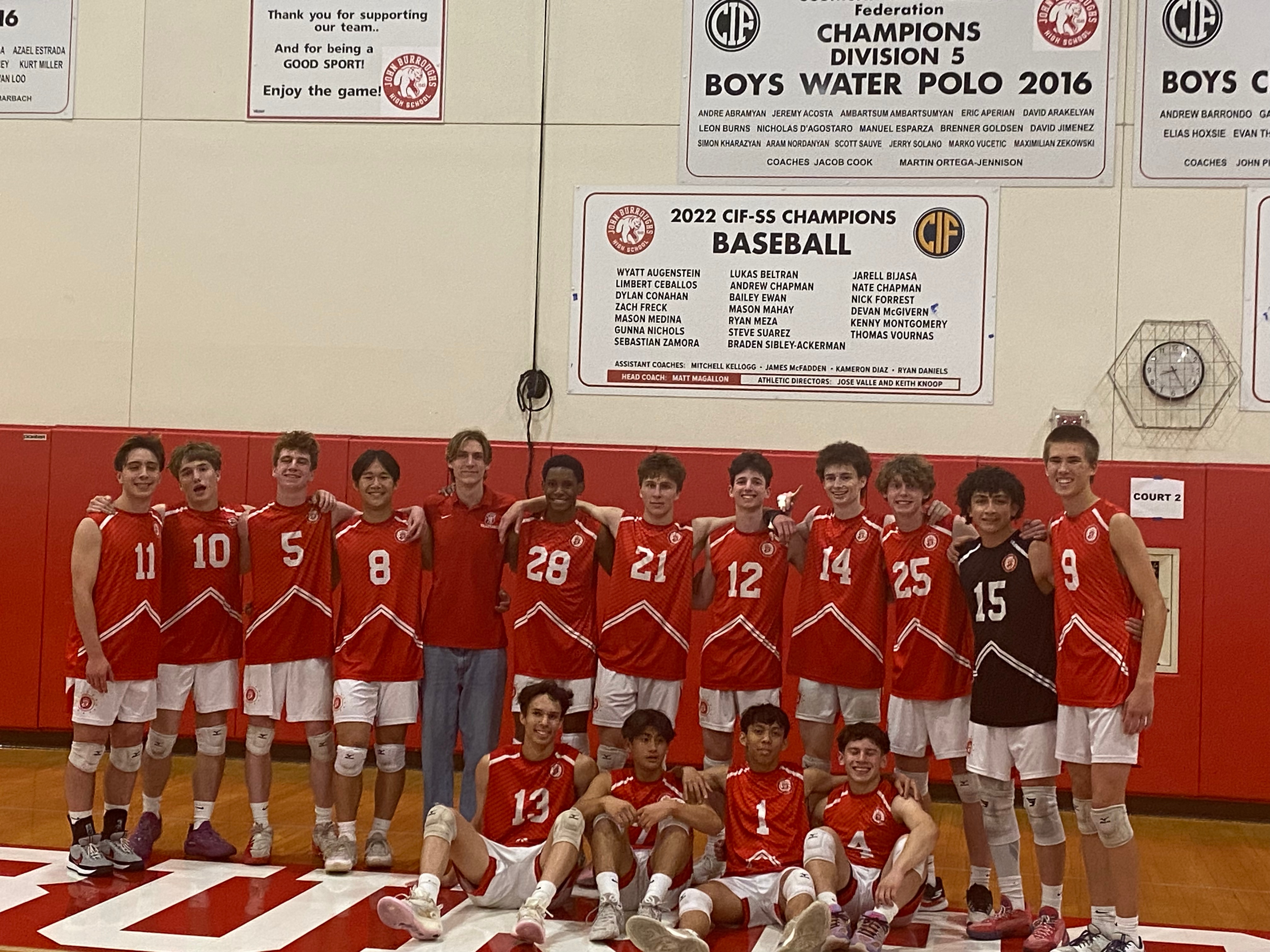 The John Burroughs Bears defeated the Crescenta Valley Falcons 3 sets to 1 (25-16, 25-19, 22-25, 25-23) on Thursday evening. Gavin Etterbeek’s match-winning block kept the Bears in contention for their second consecutive Pacific League title, tied for first place with the Arcadia Apaches. Back on Tuesday, the Falcons came off a four-set win over Arcadia and Burroughs swept their cross town rivals the Burbank Bulldogs on senior family night.